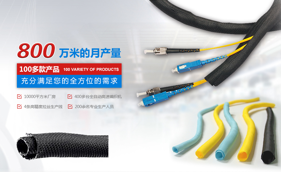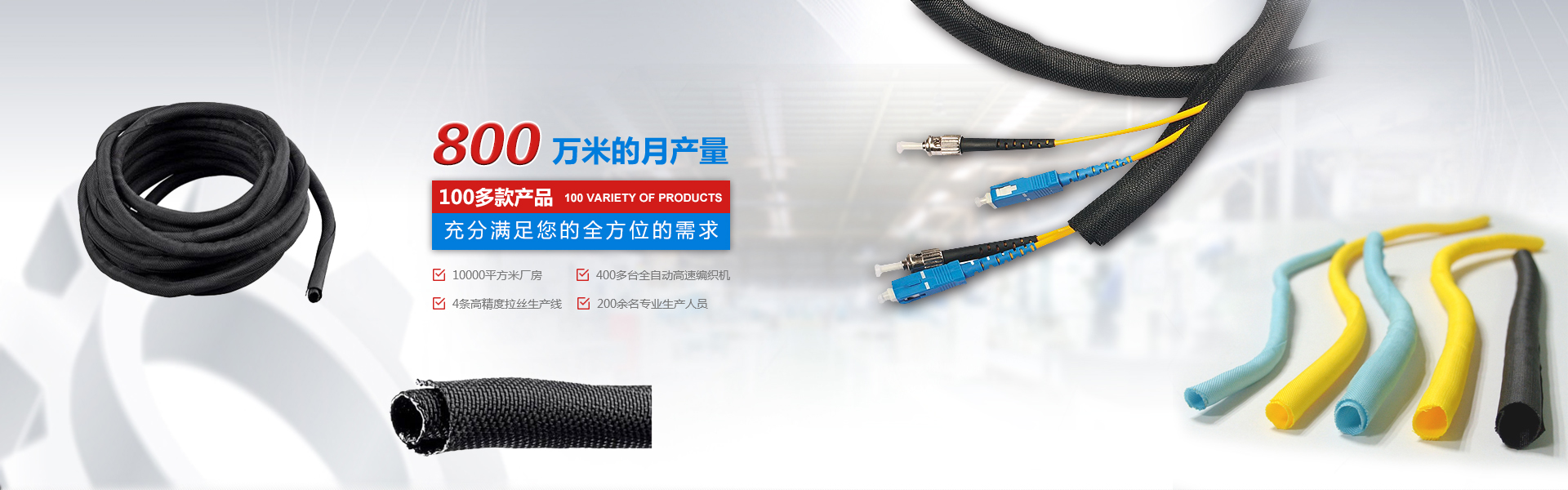 自主設(shè)計、研發(fā)、規(guī)?;笮蜕a(chǎn)企業(yè) 擁有廠房10000平米,400多臺全自動。高速編織機四條高精度紡絲生產(chǎn)線,員工200余人,月產(chǎn)量800萬米,中國最大絕緣保護套管生產(chǎn)企業(yè)之一。